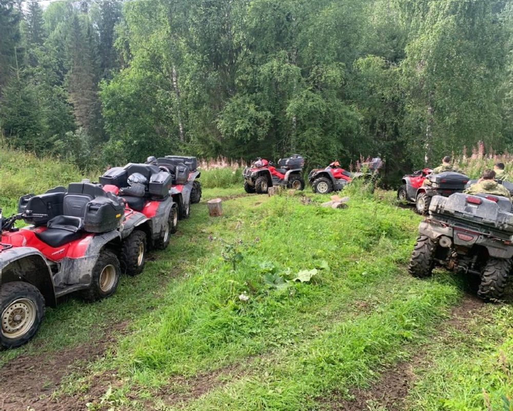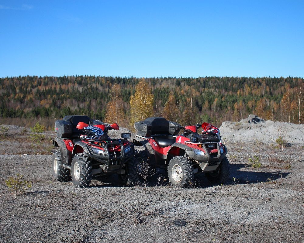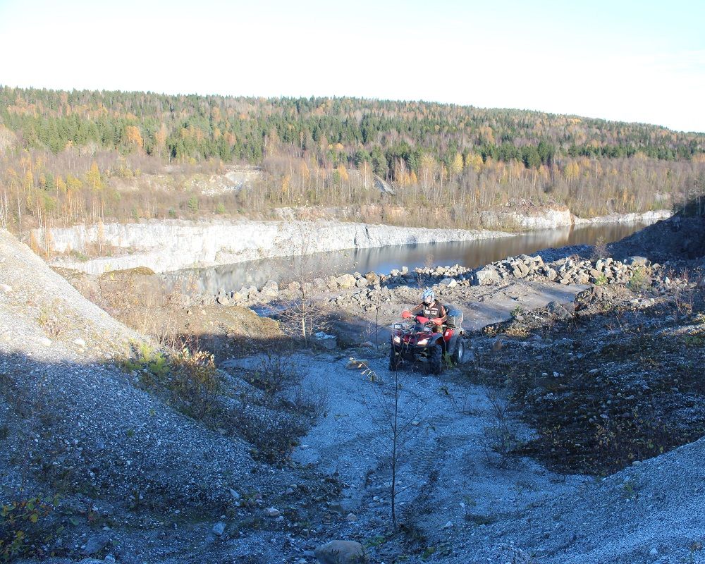 Трасса протяженностью 15км, подходит для тех, кто имеет хоть небольшой опыт в использовании любой техники или кто уверен в себе и готов покорить железного коня. Новичкам на протяжении всей дороги будет помогать опытный инструктор. Принимая участие в поездке на квадроциклах, Вы получите уникальную возможность добраться до труднодоступных мест в окрестностях поселка Рускеала. В начале маршрута, Вы посещаете второй мраморный каньон и поднимаетесь на Гору дракона, откуда открывается захватывающий вид на красивую местность. Выезжая на лесную трассу, на пути Вас ждут преграды в виде ручьев, мостиков из бревен, местами грязь. Не бойтесь испачкаться, это сделает наше приключение еще увлекательнее! Проезжаем Раковое озеро, где обитают голубые раки. Лес летом завораживает своей пышной зеленью. Когда заезжаешь поглубже в чащу, то сразу ощущается прохлада и свежесть. Наслаждаясь поездкой по лесной дороге, Вы выезжаете к реке Тохмайоки, на берегу которой сможете отдохнуть. Тохмайоки переводится как «бешенная река». На бурной реке сохранились останки финской водяной мельницы. На обратном пути Вы будете проезжать по полям, где особенное впечатление произведут фундаменты финских хуторов. Возвращение на пункт проката.